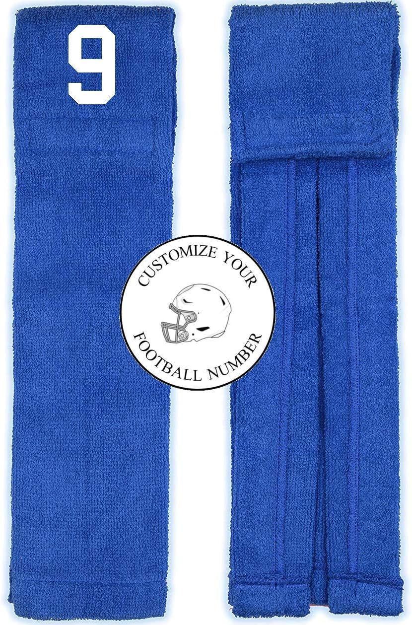 Custom player number football towel. Select your number from the drop down menu to be personally customized for you.